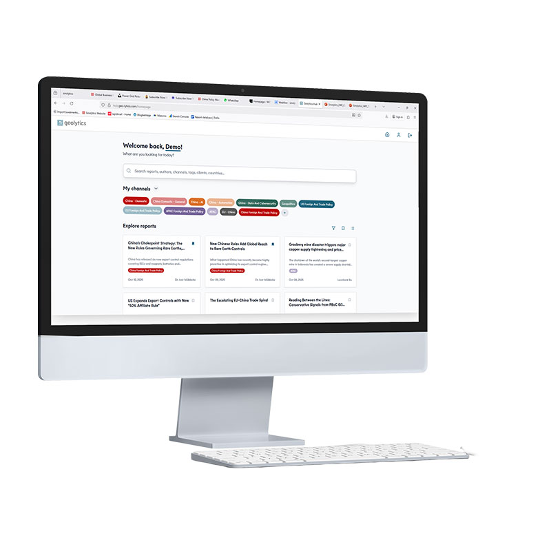 Geolytics.Hub is the digital platform through which clients access our analysis. It structures insights into topic channels and offers a seamless way to explore updates, assessments, and tailored implications.